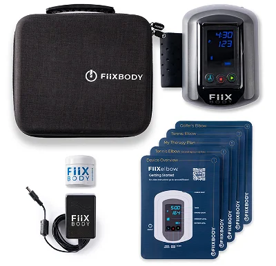 We are always looking for ways to improve our athletes condition and get them back to 100% quicker. Recently we heard of a new tool for help with elbow tendonitis – Fiix Body machine. It looks interesting, and seems to be one of its kind. At its core, it mechanizes a scraping movement that a therapist would do to a person with elbow tendonitis. That scraping movement (also known as Graston Technique, Gua Sha, or IASTM) is supposed to re-align muscle fibers, and remove scar tissue that is causing tendonitis. The device has a lot of good reviews, and also has a stamp of approval from USPTA (United States Professional Tennis Association) as “Official Tennis Elbow Device of the USPTA”.